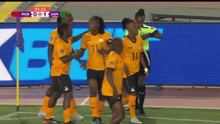 La CAN Féminine 2024 ne pouvait pas mieux démarrer. Après seulement deux minutes de jeu, le premier but de la compétition a déjà été marqué. C’est l’œuvre de l’inévitable Barbra Banda qui est allée seule défier la défense du Maroc pour ouvrir le score pour la Zambie.