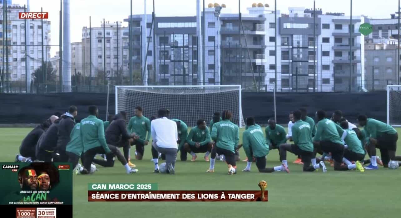 L’équipe nationale du Sénégal a effectué, ce vendredi, sa séance d’entraînement à l’annexe du stade de Tanger, désormais devenue la tanière des Lions durant cette Coupe d’Afrique des Nations 2025. Une séance rassurante à plus d’un titre, marquée par la présence de l’ensemble du groupe.