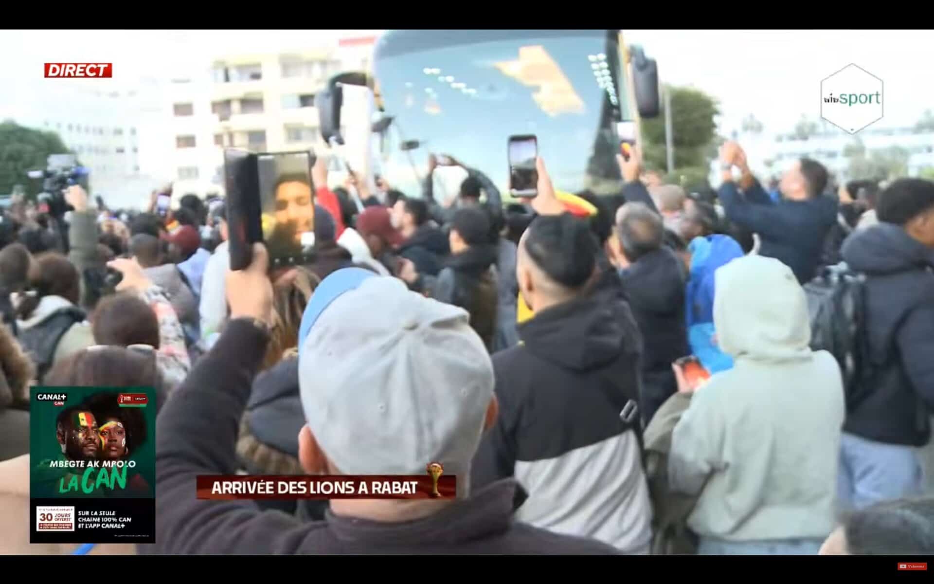 « Un message aux supporters sénégalais ? On va tout donner ». L’entrée dans le bus allait prendre encore un peu de temps pour Moussa Niakhaté, lorsque le défenseur de l’Equipe Nationale du Sénégal a lâché, à voix basse mais captée par les caméras, ces quelques mots dans un invraisemblable layon. À deux jours de la finale de la Coupe d’Afrique des Nations, face au Maroc, ce dimanche soir (19h00 GMT), le Lyonnais et ses partenaires ont vécu une arrivée ubuesque à Rabat, la ville qui accueille le gros match, ce vendredi soir.